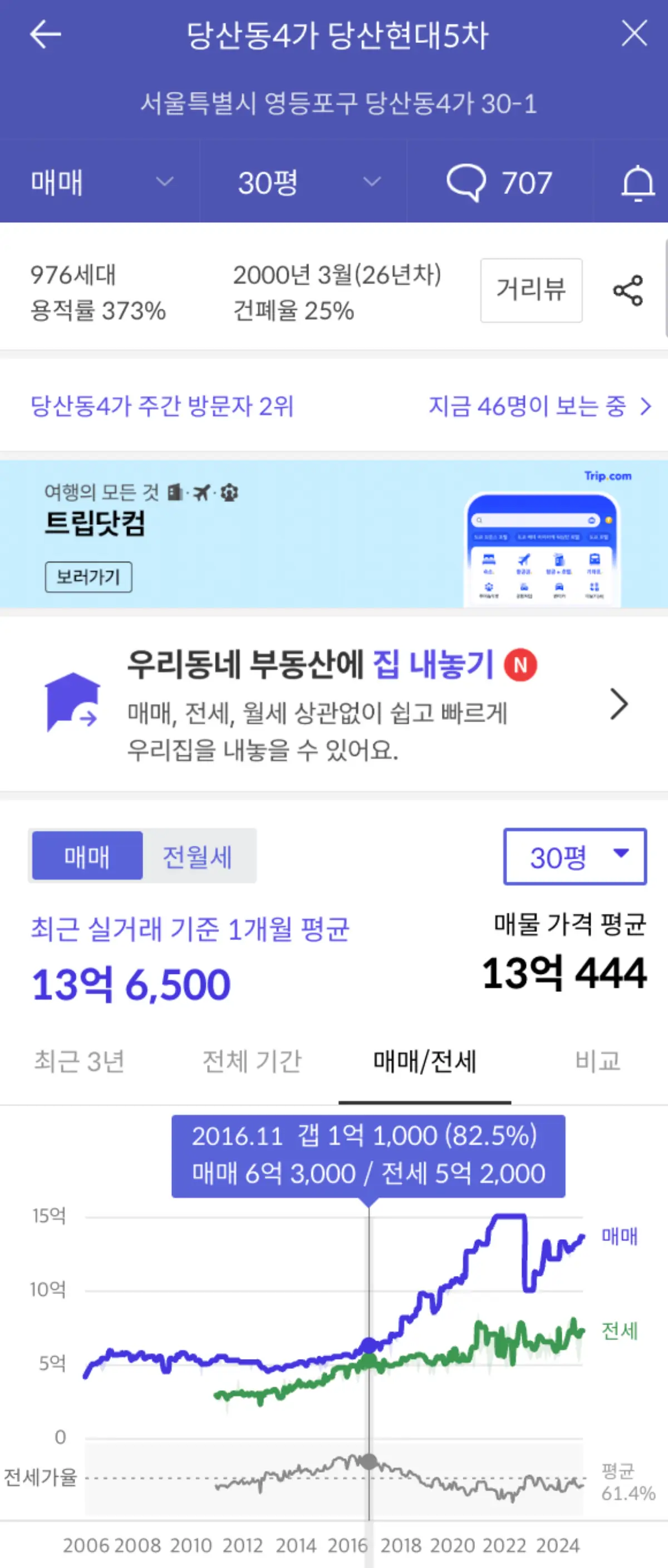 2억의 종잣돈이라면 2017년 당시 당산동 당산현대 5차 30평을 2채 매수할 수 있었다. (매매 6.3억, 전세 5.2억)